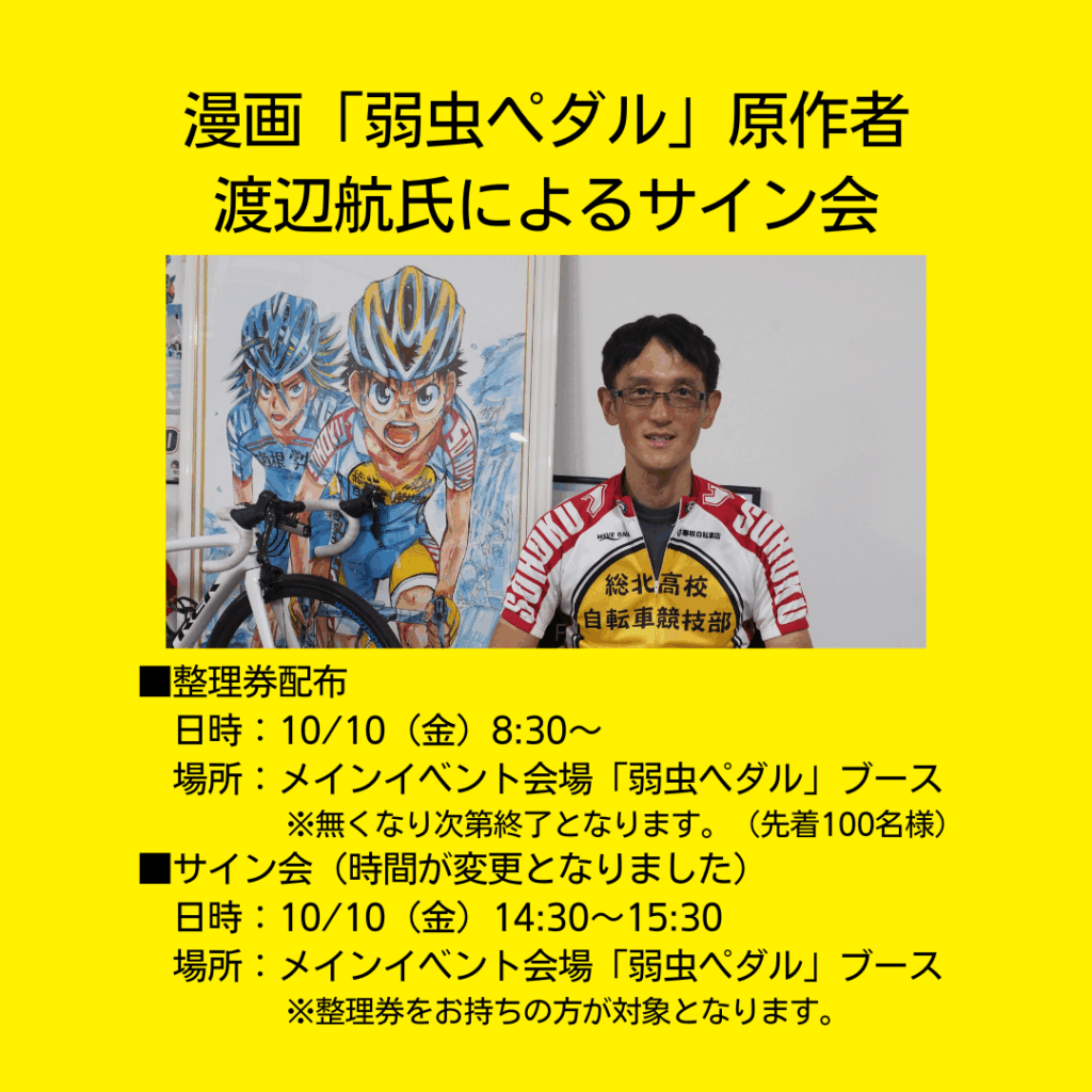 なお、漫画「弱虫ペダル」原作者・渡辺航さんのサイン会については、以下のとおりです。